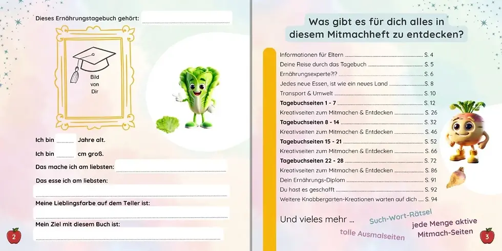 Ein liebevoll gestaltetes Mitmach-Malbuch, mit dem kleine Entdecker ab 4 Jahren spielerisch in die Knabbergarten-Welt eintauchen. Mit einfachen Ausmalmotiven, ersten Figuren aus Obst & Gemüse und viel Platz für Kreativität – ideal als Einstieg, bevor die großen Mitmach-Bücher folgen.